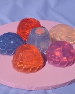 Jellycore is based around and characterized by jelly-like visuals. More specifically, it can be literal jelly/gelatin or anything that has a similar look such as soap, slime, lip gloss, and more. Although the aesthetic mostly includes visuals of jelly-like or watery things, items that look jelly-like can also fall under the aesthetic, such as transparent plastic toys or colored glass. Jellycore doesn't always necessarily have to include translucency and opaque jelly-like things such as puddings can be included. This aesthetic has a very refreshing feel to it.